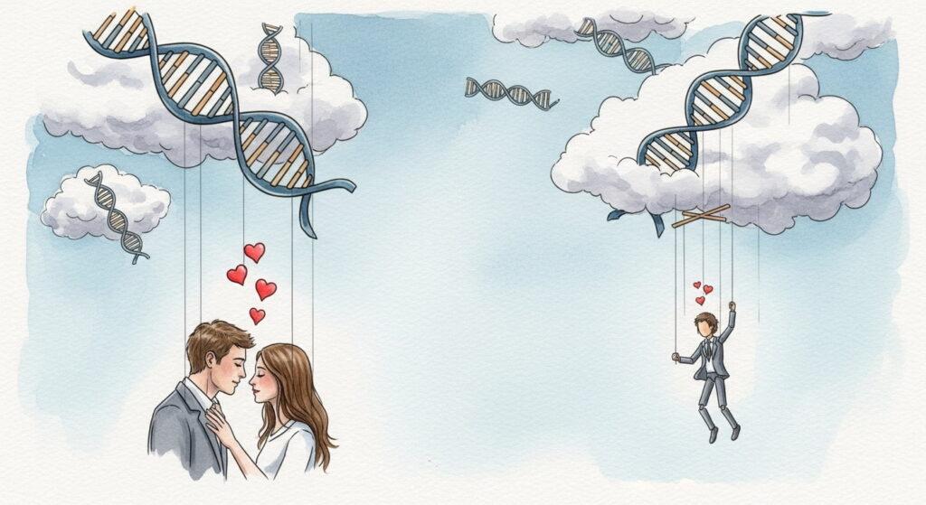 유전자에게 개체(나)의 행복 따위는 중요하지 않다. 그들의 유일한 목적은 ‘복제와 존속’이다. 유전자의 입장에서 완벽한 짝을 놓친다는 것은 곧 ‘유전적 죽음(Genetic Death)’을 의미한다.